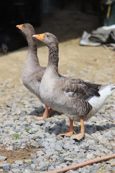 Romeo and Juliet are a bonded pair of greylag geese. They came to Kindred Spirits Rescue Ranch after another sanctuary who was full reached out in search of a safe, loving forever home for them. Romeo and Juliet fit in quickly with the rest of the geese gang here, who are known to parade around the property all day, loudly announcing their presence.